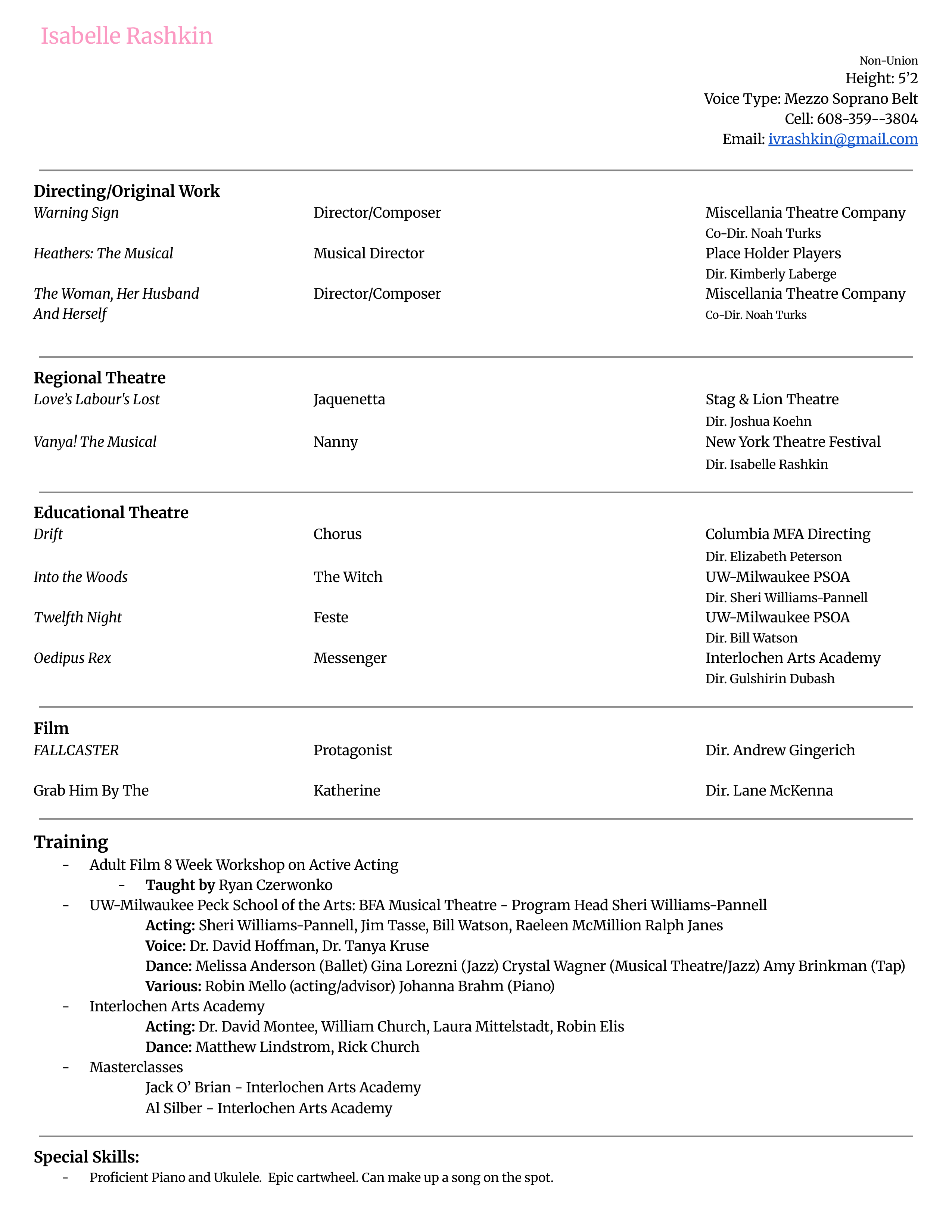 Interlochen Arts Academy 2018 / University of Wisconsin-Milwaukee 2022